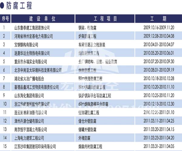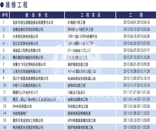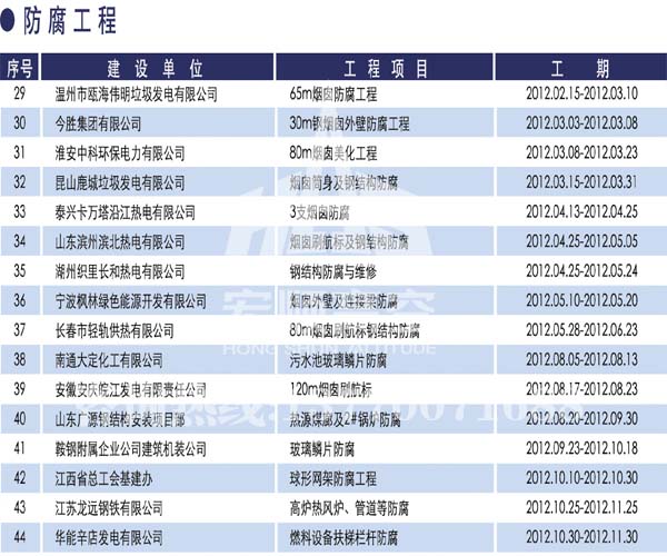 宏順建設(shè)工程有限公司是國家批準成立的專業(yè)高空作業(yè)企業(yè):承攬過(國內(nèi).國外)煙囪新建、煙囪防腐、吊機防腐、水塔防腐、管道防腐、龍門吊防腐、儲存罐防腐、煙囪內(nèi)壁防腐等高空作業(yè)工程。具有“不搭腳手架 、 不需要停產(chǎn)”施工特點。